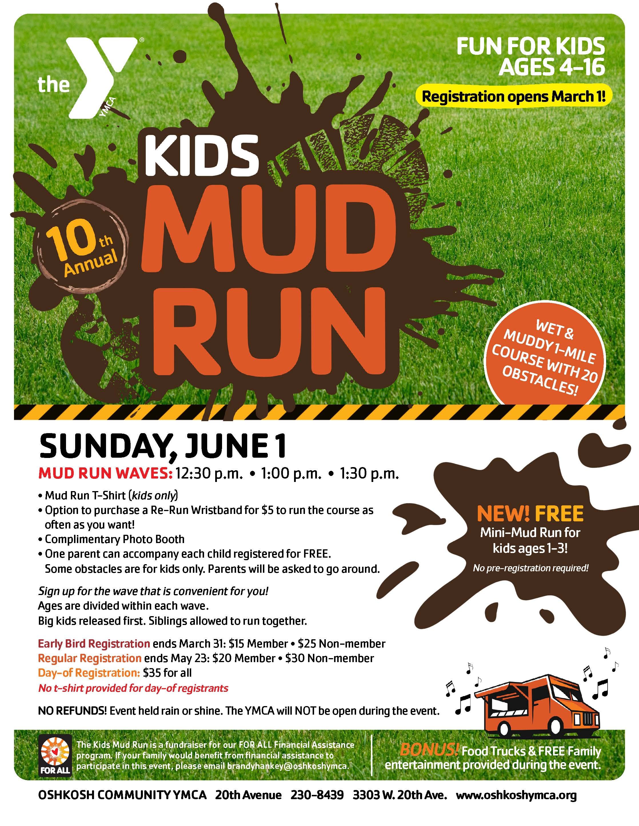 Hello! We need "all hands on deck" to pull off the 10th Annual Kids Mud Run to ensure everyone has a fun and safe experience. We also need volunteers to support the Family Fun Fest event occurring on the same day. We appreciate your support!